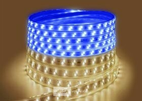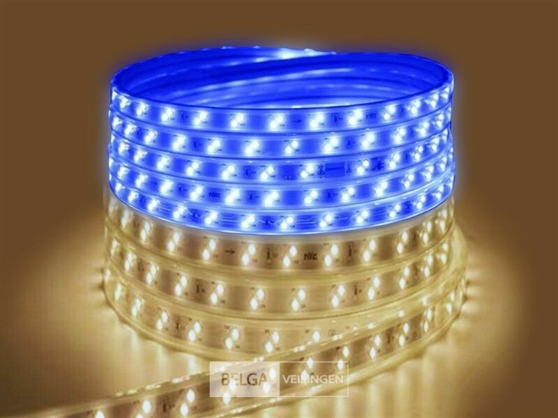 1 x LED Strip 25m - Waterdicht (IP65) - Warm wit/Blauw - Productkleur : wit - Indoor/Outdoor - Geschikt voor gebruik : binnen en buiten - IP-waarde : IP65 - Spanning : 220-240V (50/60Hz) - Afmetingen/mm : 25 m - LED SMD 2835 - Vermogen : 11W/M - Met gratis stekker - Warm wit/Blauw/Warm wit+Blauw/Warm wit+Blauw (flikkerend)