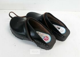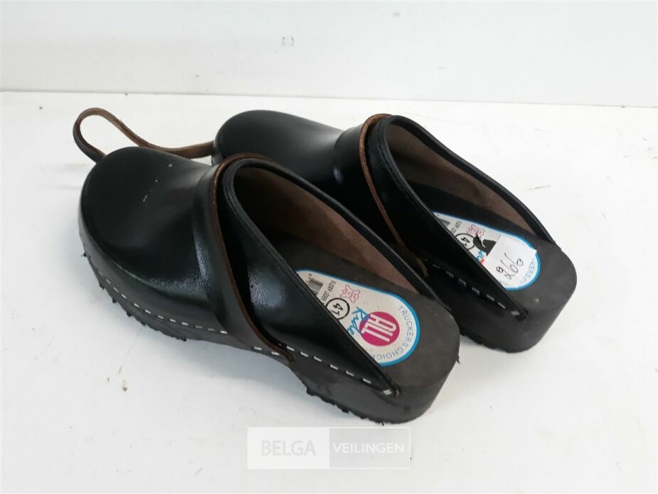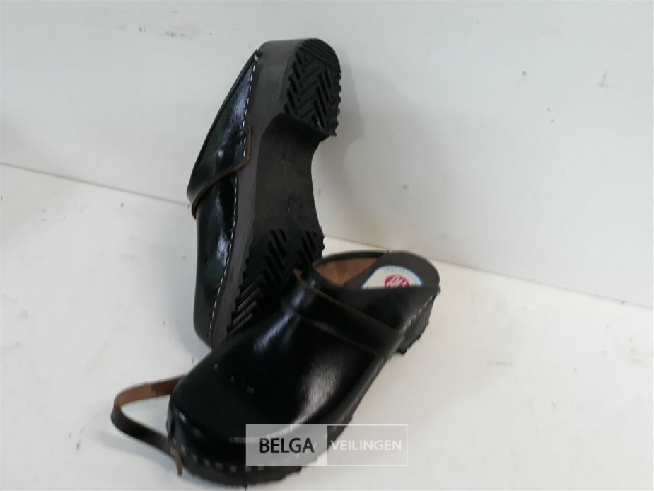 1 x Lederen tuinschoen met houten zool maat 41 open hiel