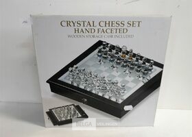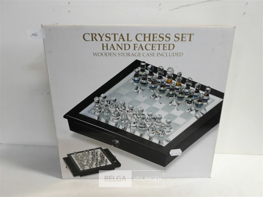 1 x Schaakbord houten opbergdoos 36x36x7 cm met cristallen pionnen