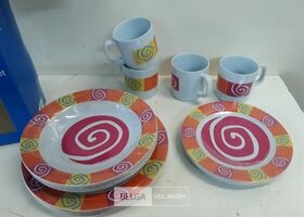 1 x Servies set uit melamine 16 delig 4 x bord-soepbord-dessertbord-mok Gelert vaatwabestendig