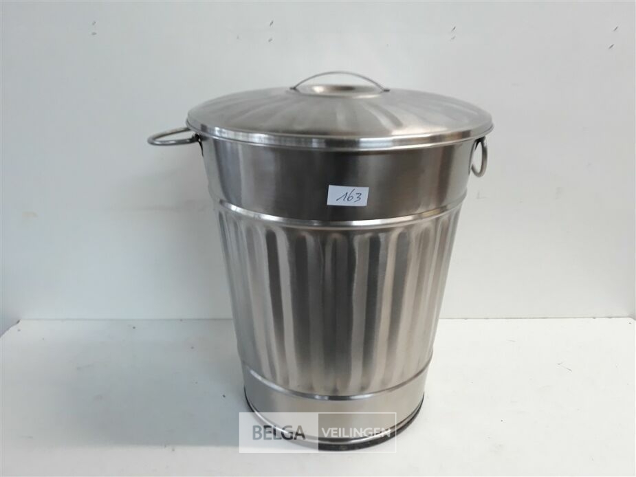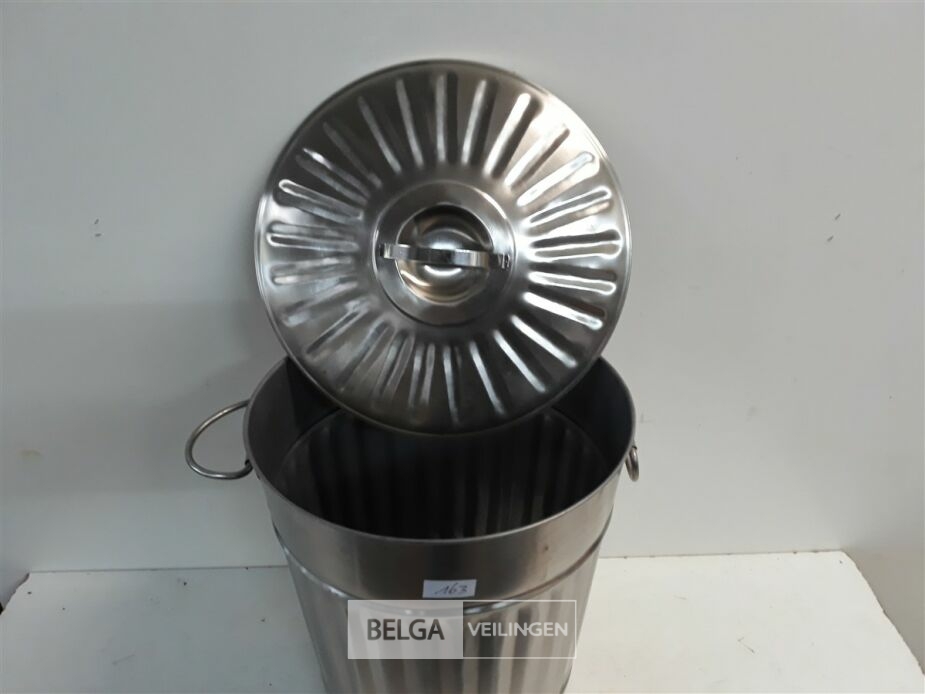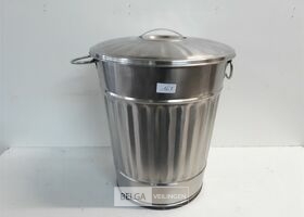 1 x Stalen vuilbak H 37cm dia 30 cm met deksel