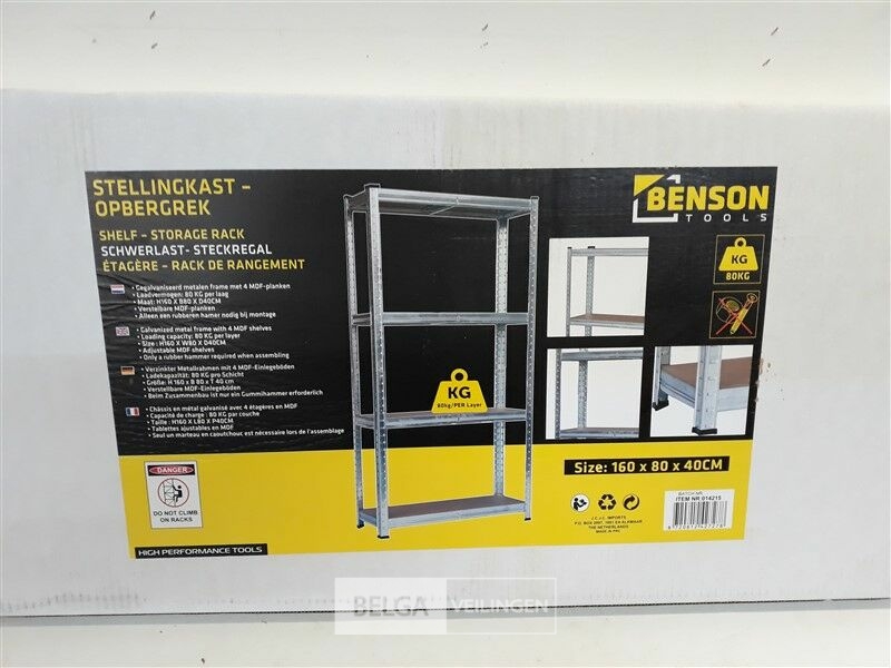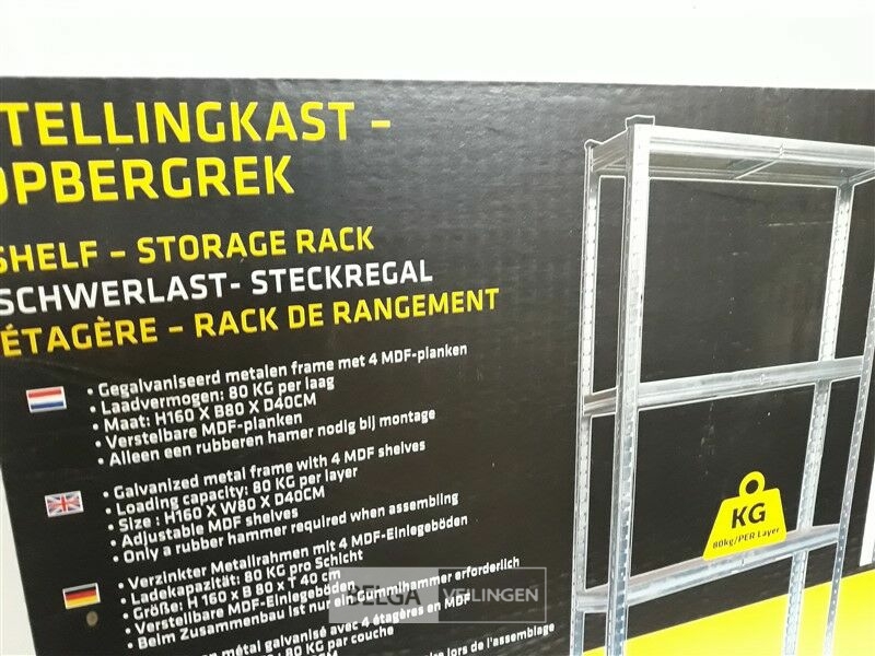 1 x stapelrek metaal 160x80x40 cm met 4 leggers max 80 kg per legger uit MDF bevestiging zonder schroeven