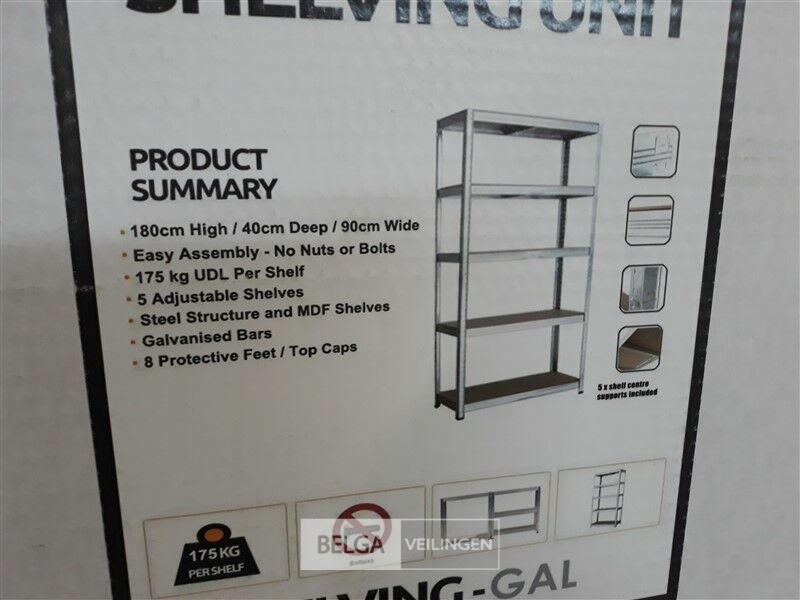 1 x stapelrek metaal 180x90x40 cm met 5 leggers max 175 kg per legger uit MDF zonder schroeven