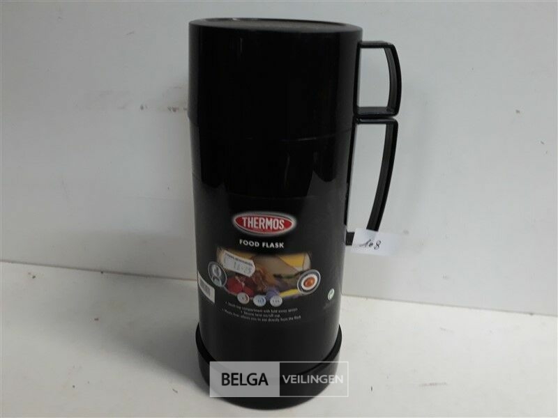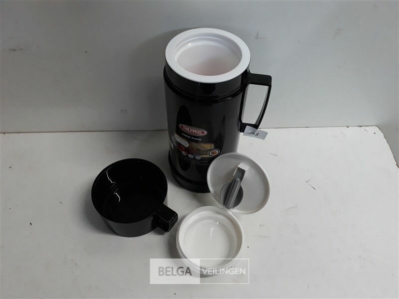 1 x Thermos Food 1 L zwart met lepel in schroefstop warm 6u koud 12u