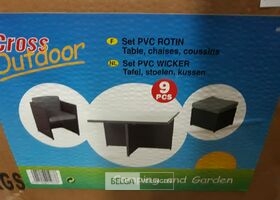 1 x Tuinset Wicker 9 delig donker grijs 1 x tuintafel 140x140 cm glazen blad + 4 x stoel met kussen + 4 x voetbank of zit met kussen