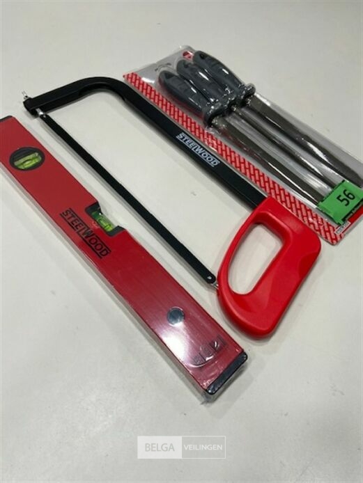 1 x vijlset 3 delig - 1 x ijzezaag - 1x waterpas