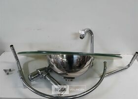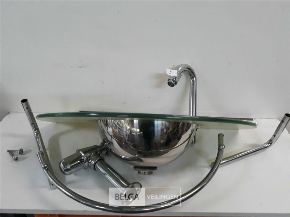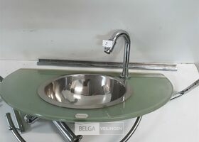 1 x Wasbak inox met glazen 10mm veiligheidsglas blad 66 x 40 cm met chrome handdoekrekje +chrome sifon + kraan showmodel zonder doos
