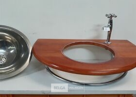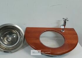 1 x Wasbak inox met houten blad 66 x 40 cm met chrome handdoekrekje + kraan showmodel