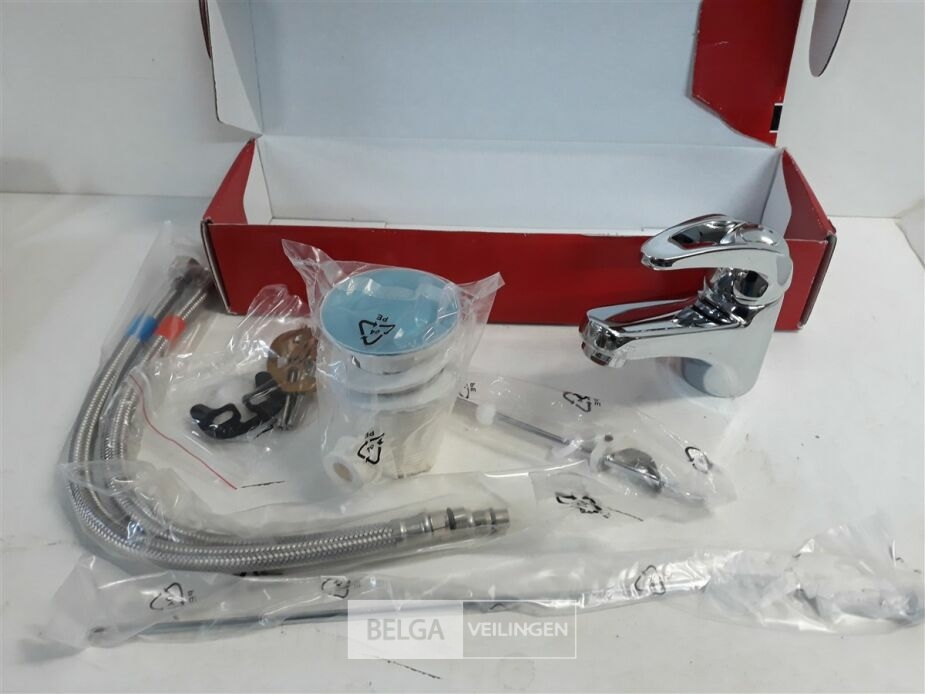 1 x Wastafel kraan wit koud/warm met auto afloop met overloop showmodel