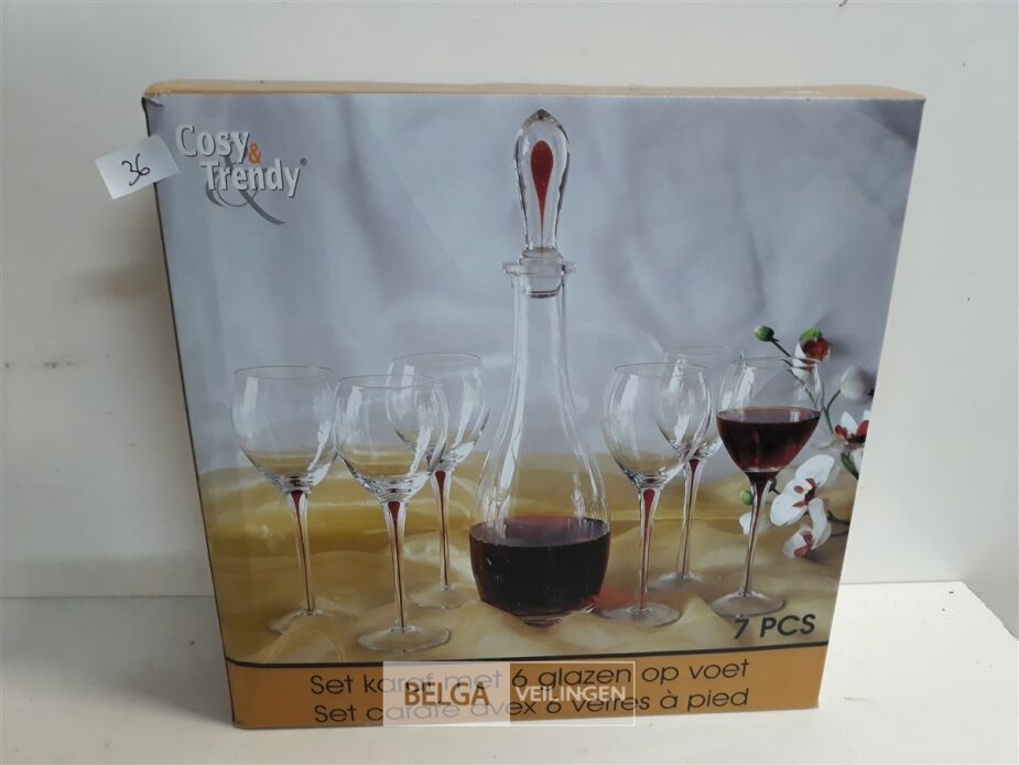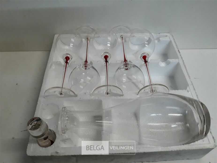 1 x Wijnset Karaf + 6 glazen met rode lijn
