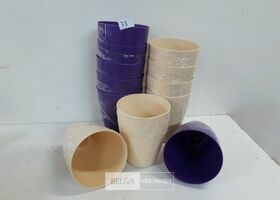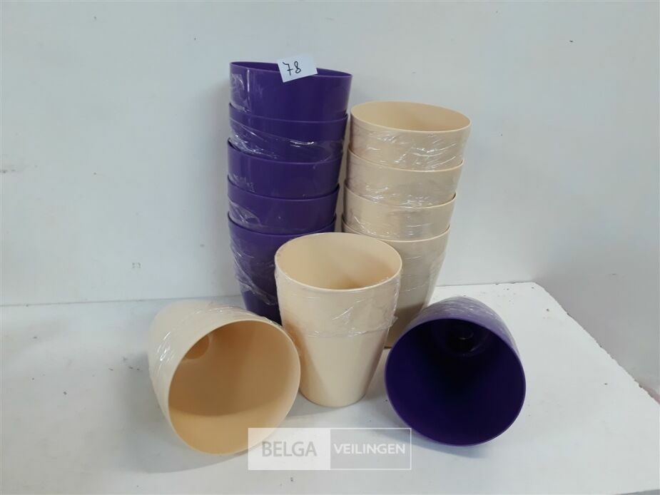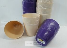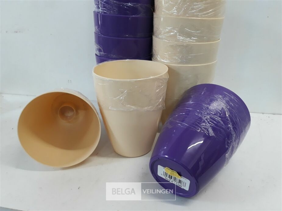 12 x Bloempot pvc 16 cm 6 x beige + 6 x paars