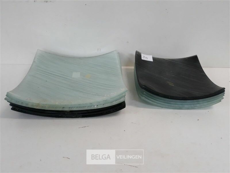 12 x Bord glas wit/glas 6 x 19x19 cm + 6 x 24x24 cm