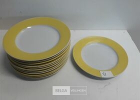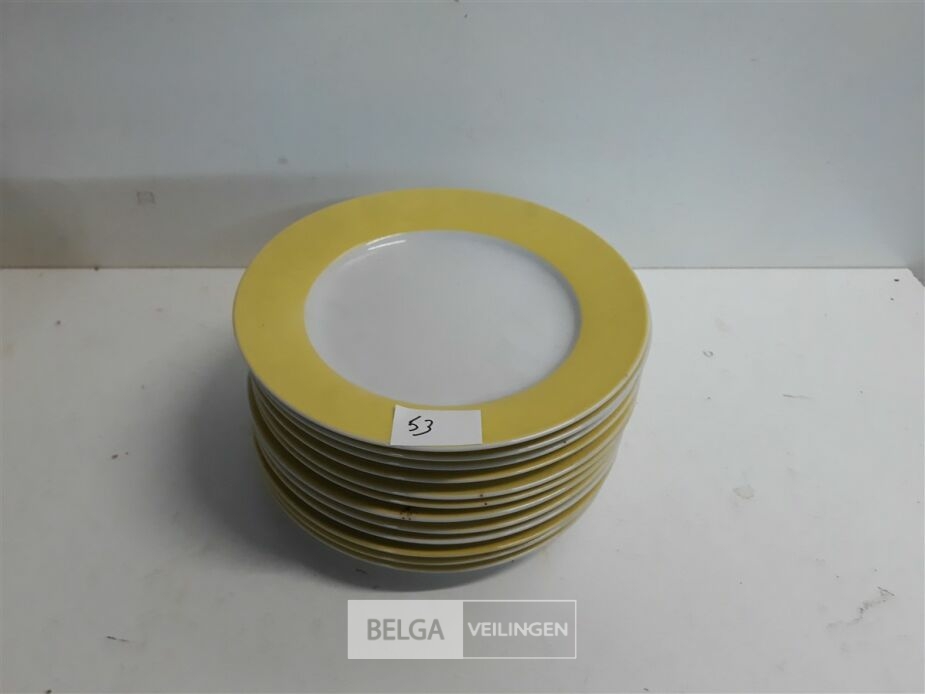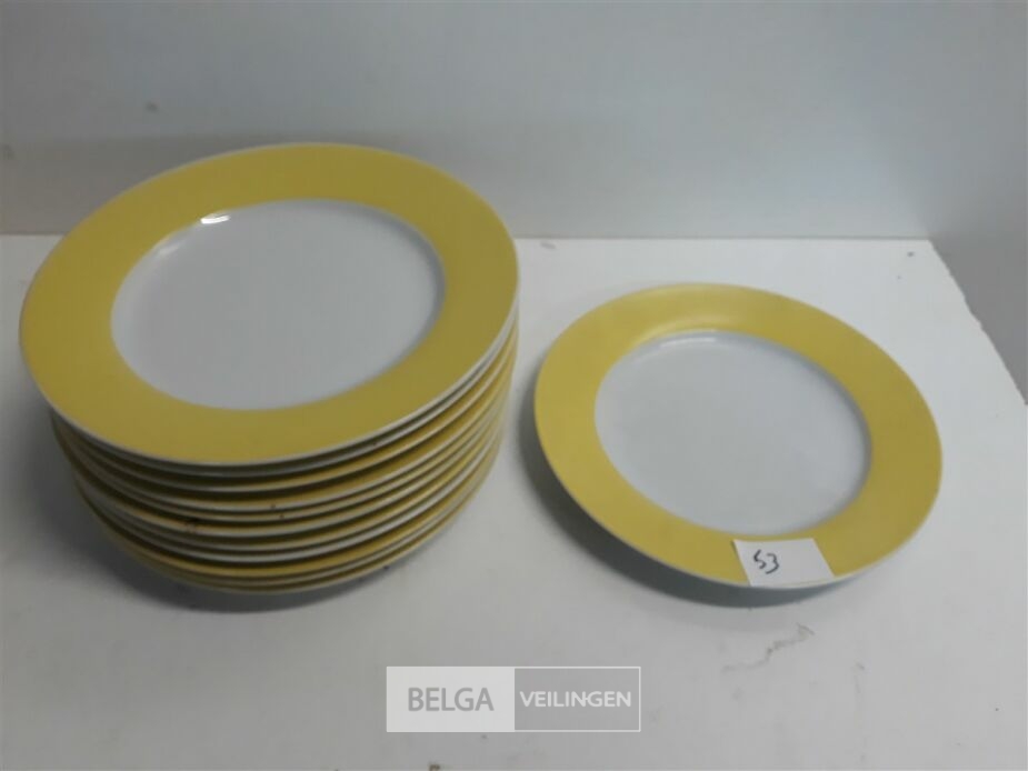 12 x Ontbijt of dessert bord porselein met gekleurde rand 19 cm