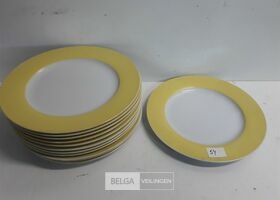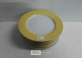 12 x Platte borden porselein met gekleurde rand 27 cm