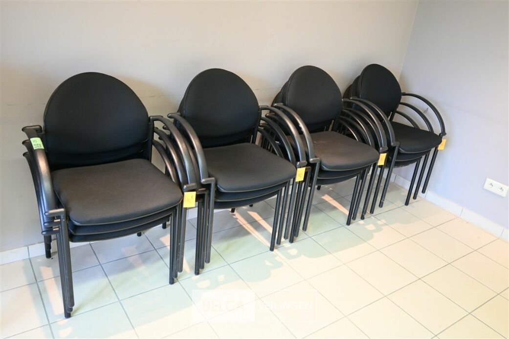 12 zwarte stoelen met ronde leuning, kunststof leuningen