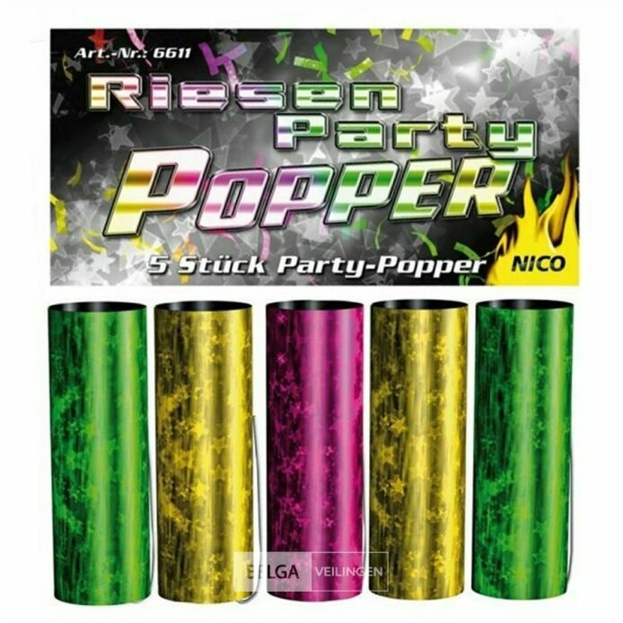 Nico partypoppers 9 cm 24x 5 -120stuks- niet knallend en ongevaarlijk confetti en slinger kanon-leuk bij al uw feesten