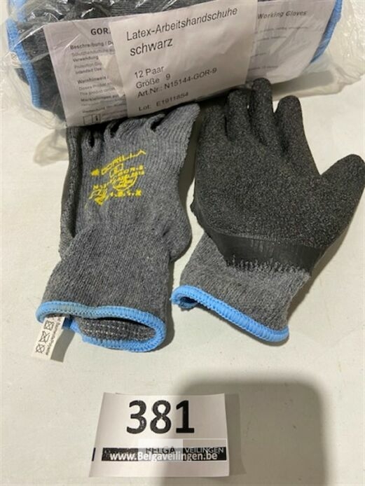 12x werkhandschoen met latex aan binnenzijde maat 9