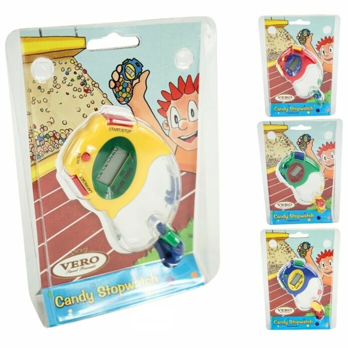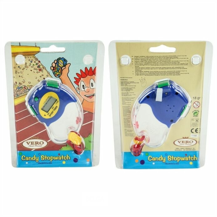 Vero Candy werkende stopwatch op batterij in 4 kleuren, vul dezelf met snoepjes -leuk op kinderfeestjes
