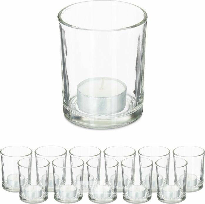 theelichtglazen set van 12 - glas - 8,5 x 7 cm - transparant-retouren van Relaxdays