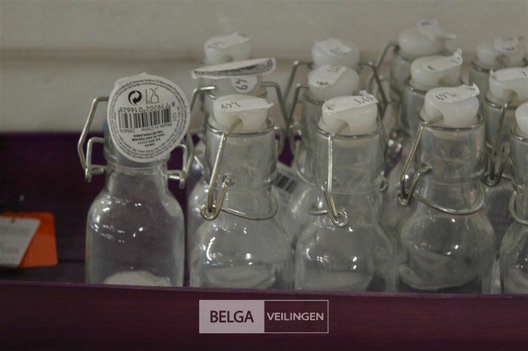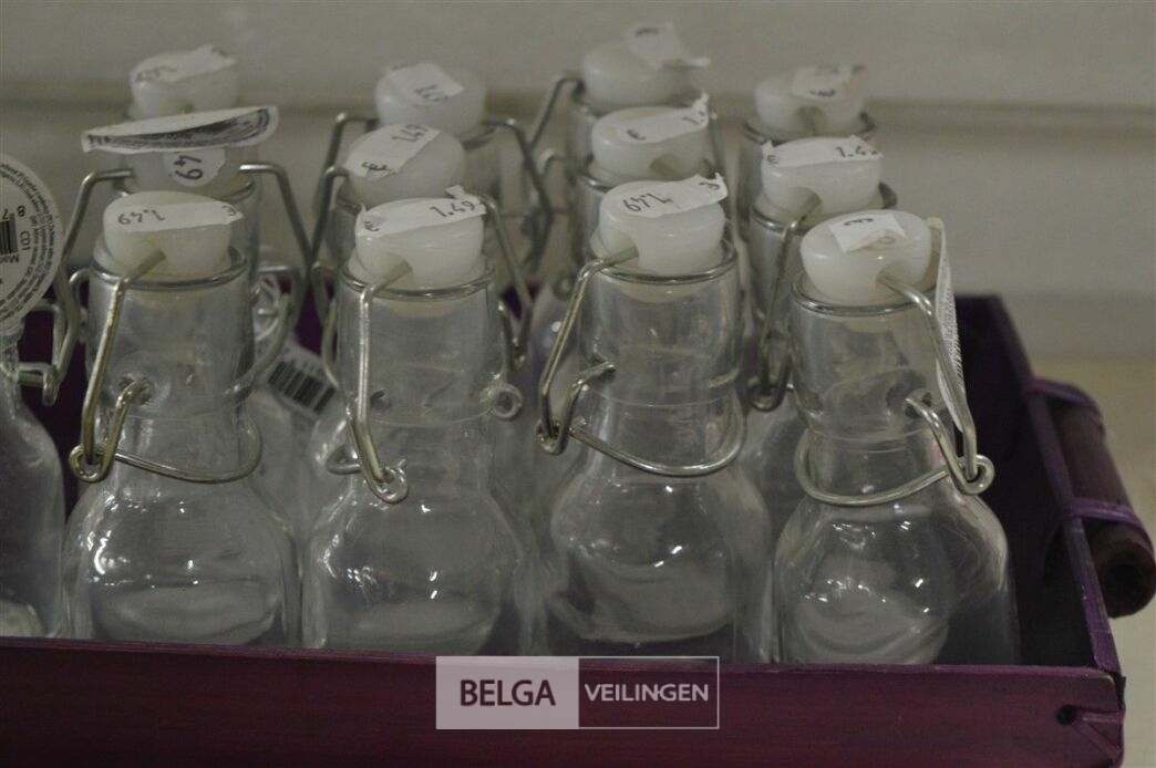 13 mini glazen flesjes