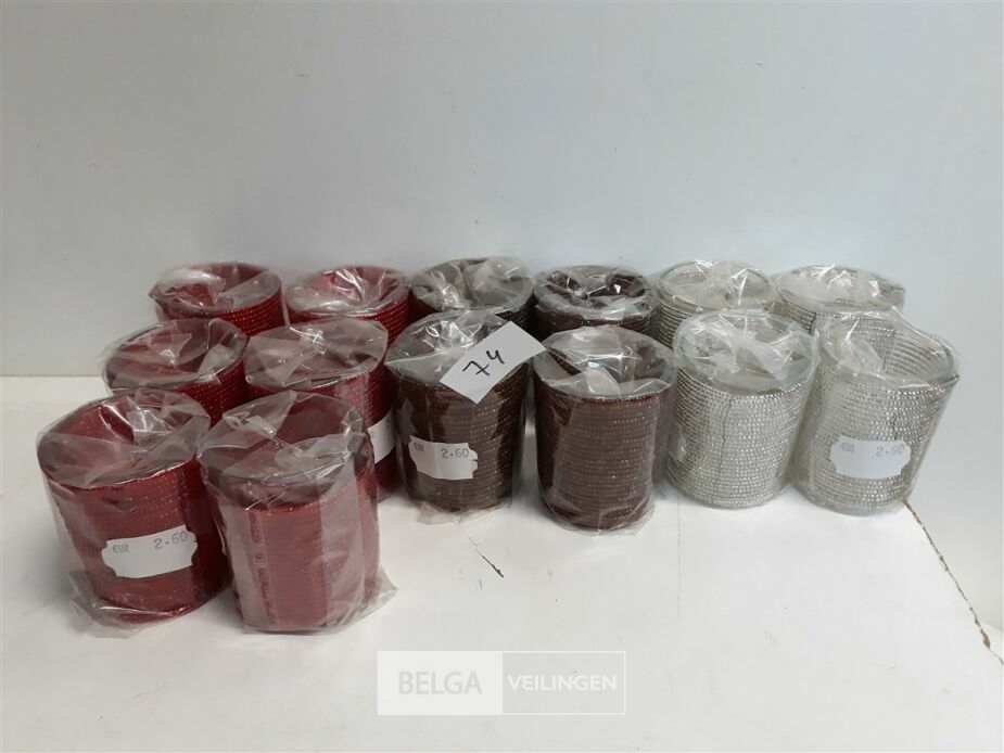 14 x T-lichtglaasje 6 x rood 4 x bruin 4 x zilver kralenmotief 7 cm