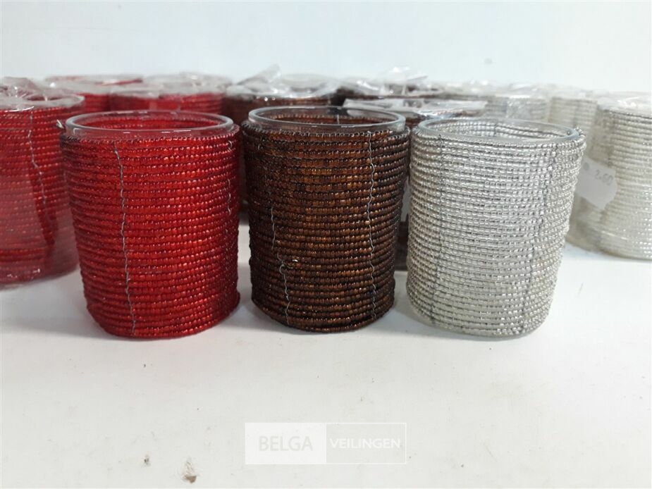 18 x T-lichtglaasje 3 x 6 stuks assorti kralenmotief 7 cm