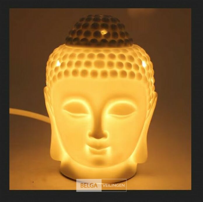 1x Keramische Boeddha hoofd elektrische oliebranderlamp. Dankzij het afneembare deksel kun je de bovenkant optillen om geurolie toe te voegen. 14*15*23cm