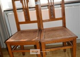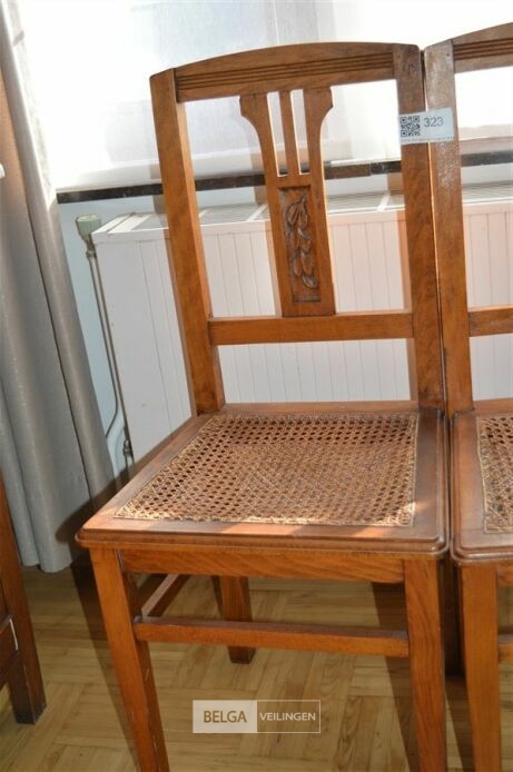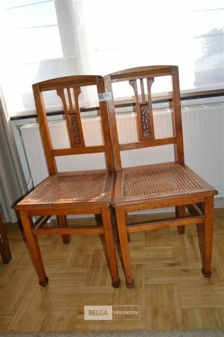 2 antiek houten stoelen met rieten zitvlak - beschadigd