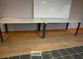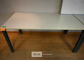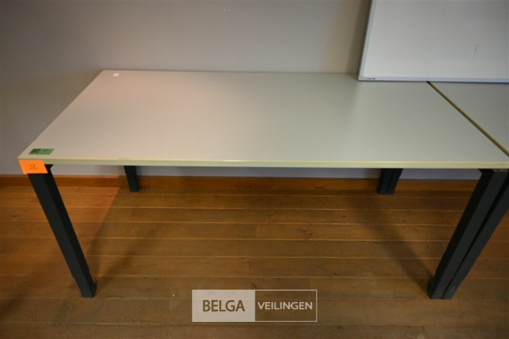 2 Bureau tafels: Lichtgrijsblad en donkergrijze poten 180 x 80 x 76, mechanisch in hoogte verstelbaar