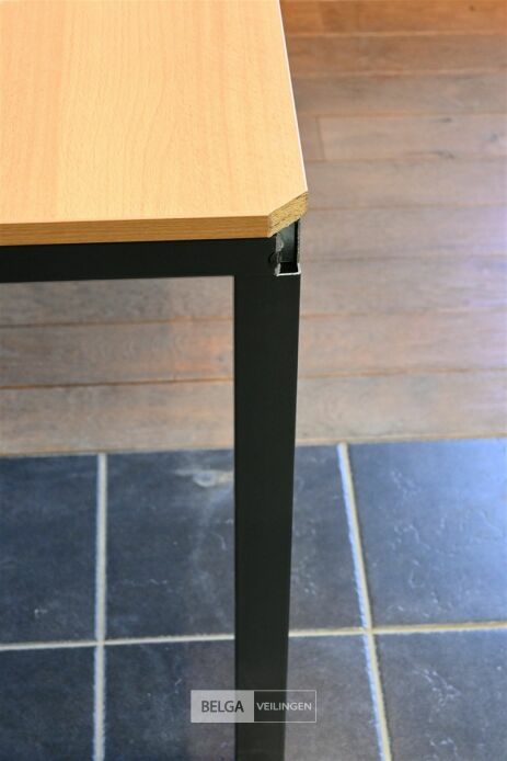 2 Bureautafels, niet mech.verstelb. Bruin houten blad, zwarte poot, afm 160x80x75 cm