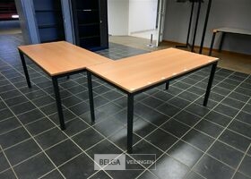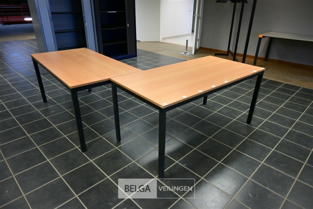 2 Bureautafels, niet mech.verstelb. Bruin houten blad, zwarte poot, afm 160x80x75 cm