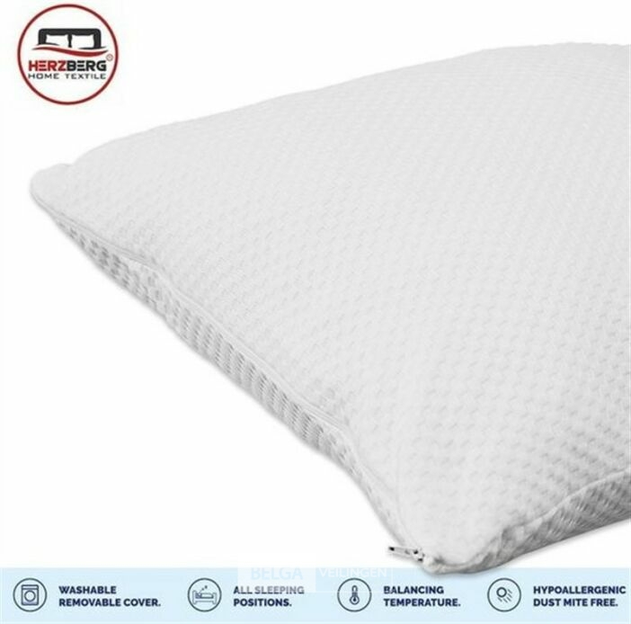 Set van 2 hoogwaardige kussens van versnipperd traagschuim. Temperatuurbalancerend, hypoallergeen, huisstofmijtvrij. Afneembare, machinewasbare kussenslopen.