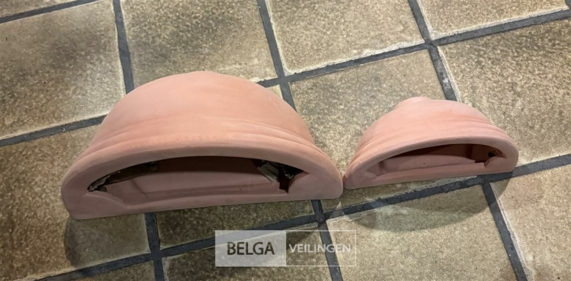 2 dozen terracotta wandbloempotten - bestaande uit 8 sets in totaal ( 4 sets van 2 per doos) - afm (20 x 10 x 10 cm en 35 x 17 x 17 cm)