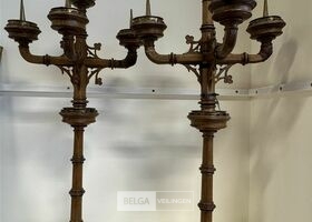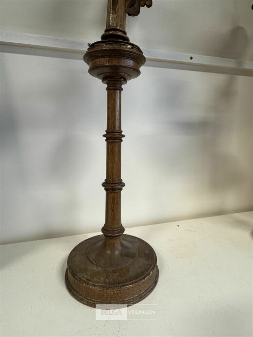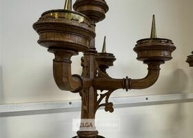 2 houten kandelaars (afm. ±70 cm ) ,voet Ø 17 cm)