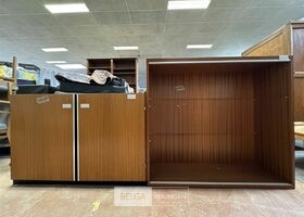 2 houten stapelbare kasten – afm (± 120 cm x 40 cm x 110 cm + 120 cm x 40 cm x 80 cm)