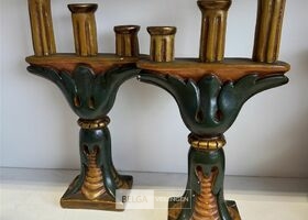 2 kandelaars met bladvormige deco – (afm. ± 36 cm x 20 cm)