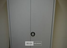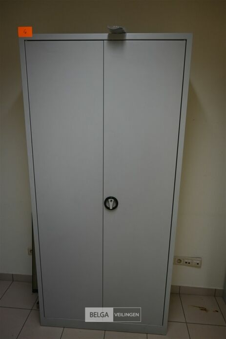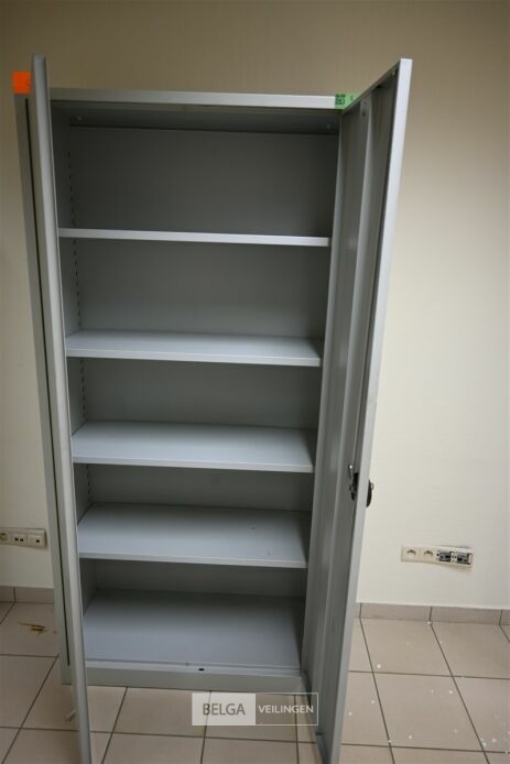 2 Kasten, grijs met gewone deuren, afm 92x42x195 cm, 3 leggers en 4 leggers