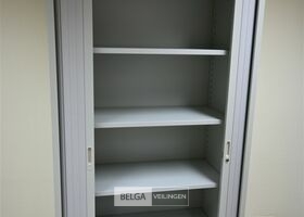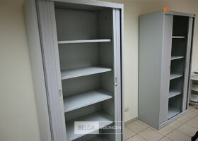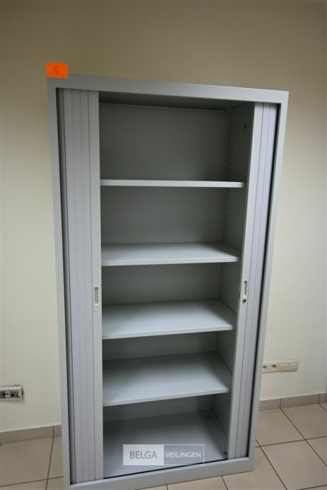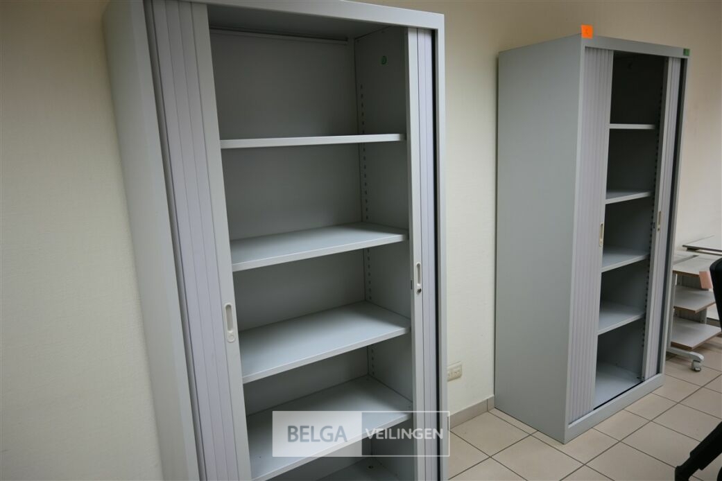 2 Kasten, grijs met roldeuren, afm 100x45x195 cm, 4 leggers