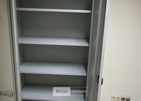2 Kasten, grijs met gewone deuren, afm 92x42x195 cm, 3 leggers en 4 leggers