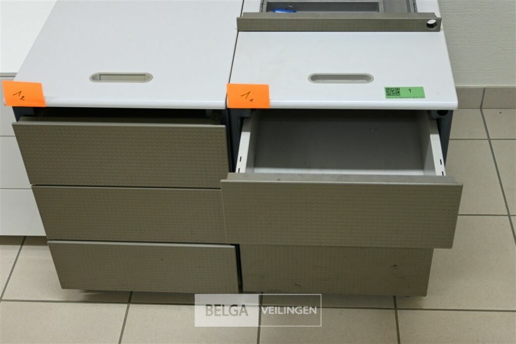 2 Ladeblokken: Grijs, verrijdbaar, afm 41x75x58 cm/3 lades
