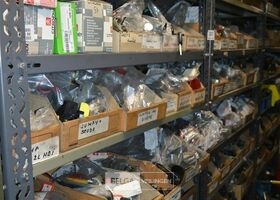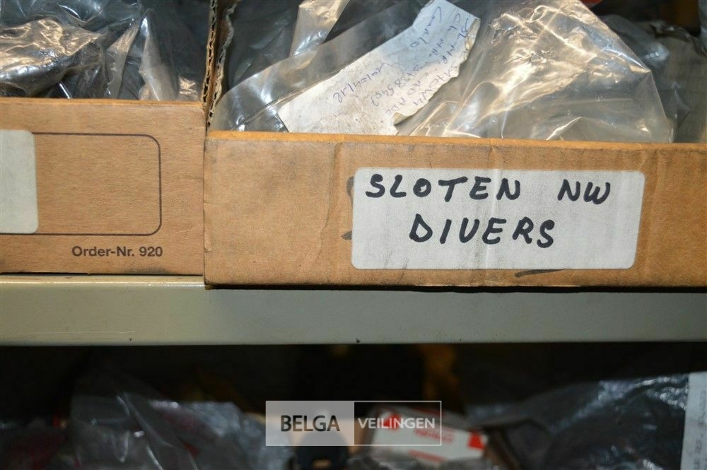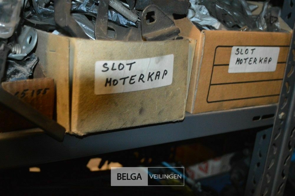 2 rekken met inhoud contactsloten, deursloten, deurscharnieren