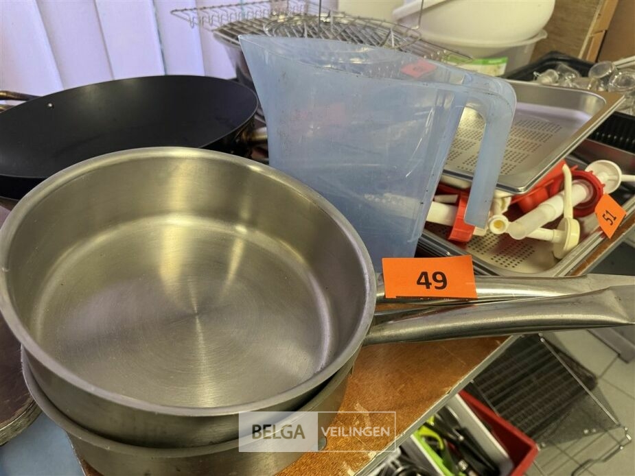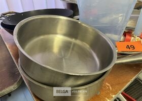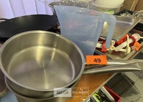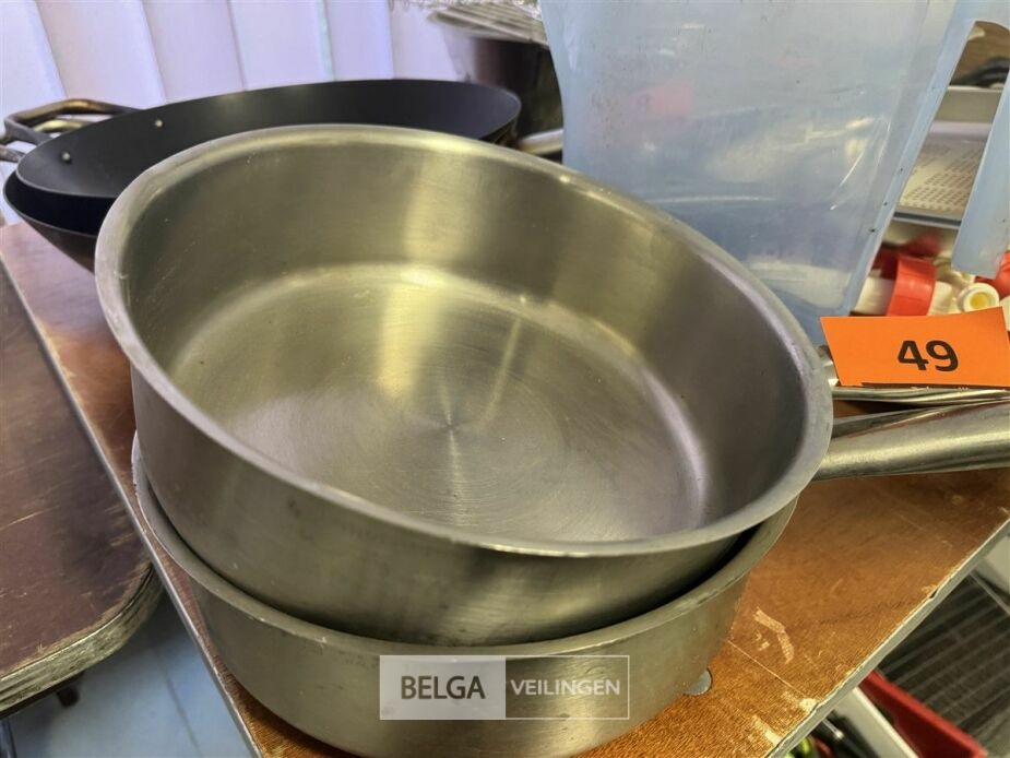 2 sauspannen ± Ø 26cm en 1 maatbeker