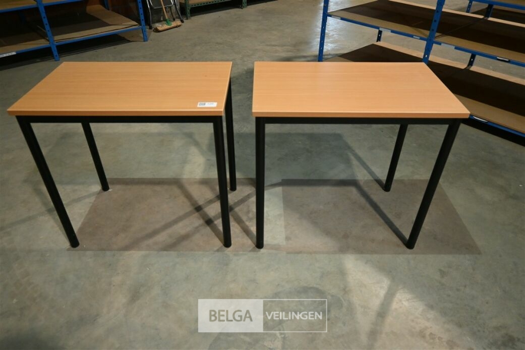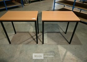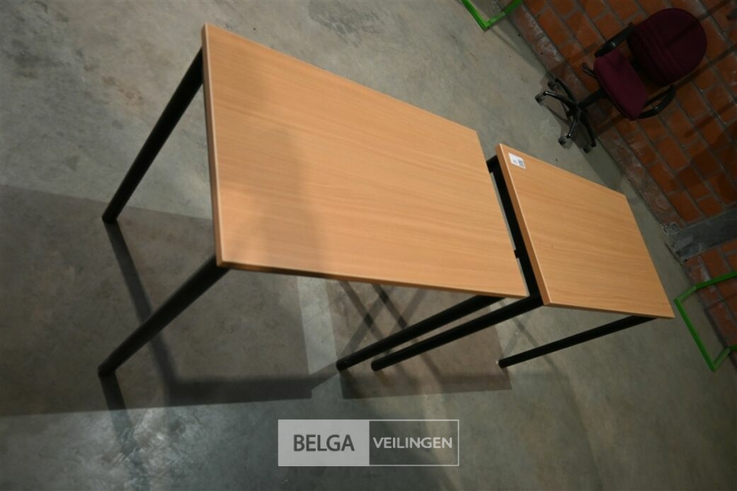 2x Tafeltjes, berkenlaminaat en zwart metalen onderstel, afm 80 x 50 x 75,5 cm