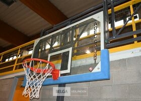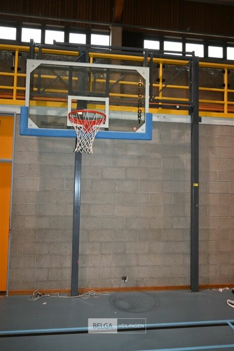 2 x basketbalring met plaat + muurbevestiging, plaat 190x110cm, de koper dient dit zelf van de muur en de grond te demonteren