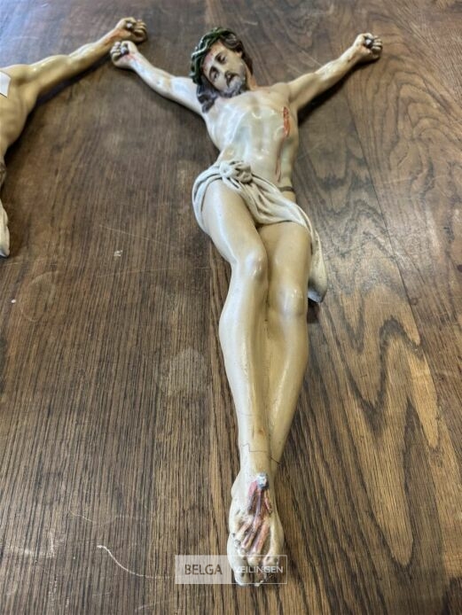 2x beeldwerk Jezus - Christus genageld – afmetingen 60 cm