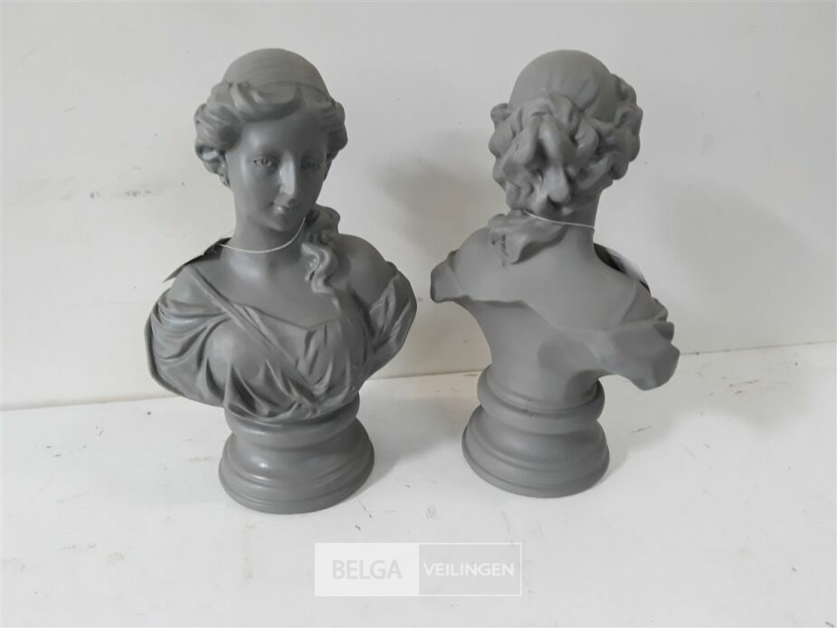 2 x Borst-beeld 32x18 cm grijs uit pvc