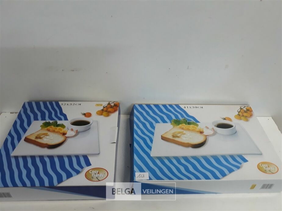2 x Ontbijtbord met kopje 1 x 32x32 cm + 1 x 41x30 cm porselein