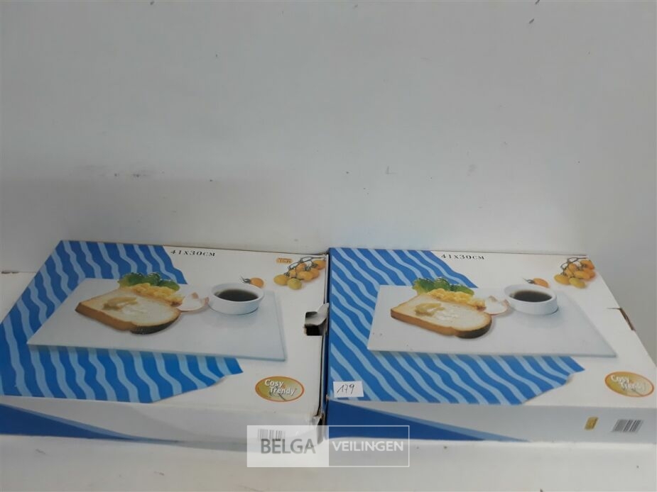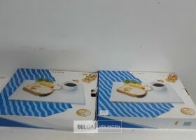 2 x Ontbijtbord met kopje 1 x 32x32 cm + 1 x 41x30 cm porselein