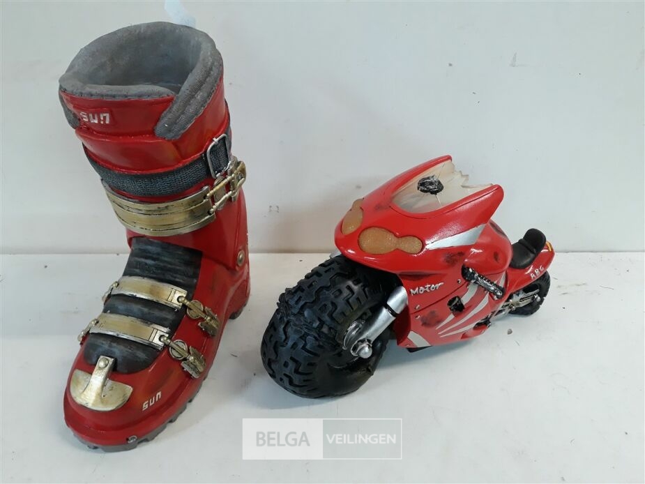 2 x Spaarpot 1 x moto 18 cm + 1 x laars 25 cm uit polyester