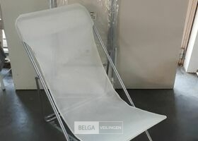 2 x Strandstoel opklapbaar metalen frame stoffen doek wit
